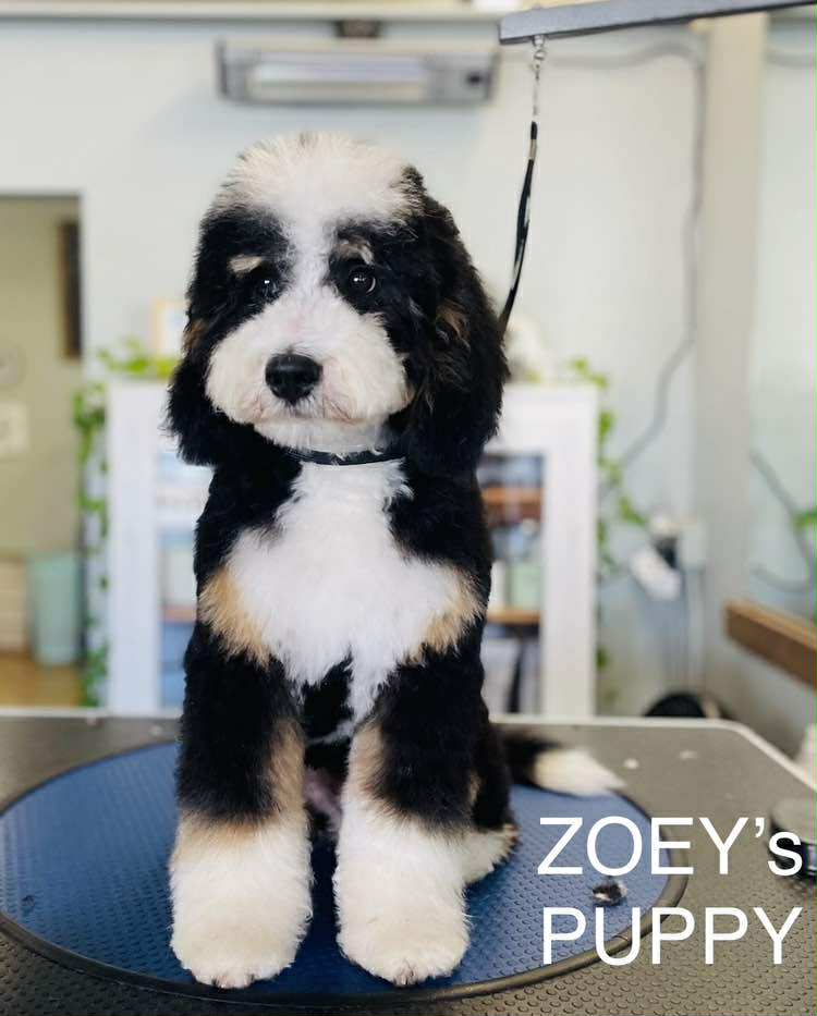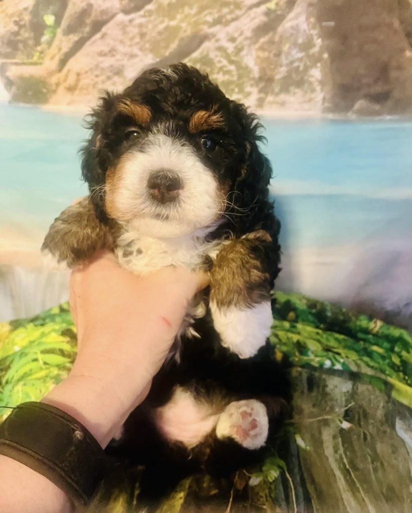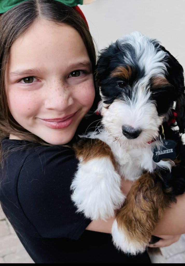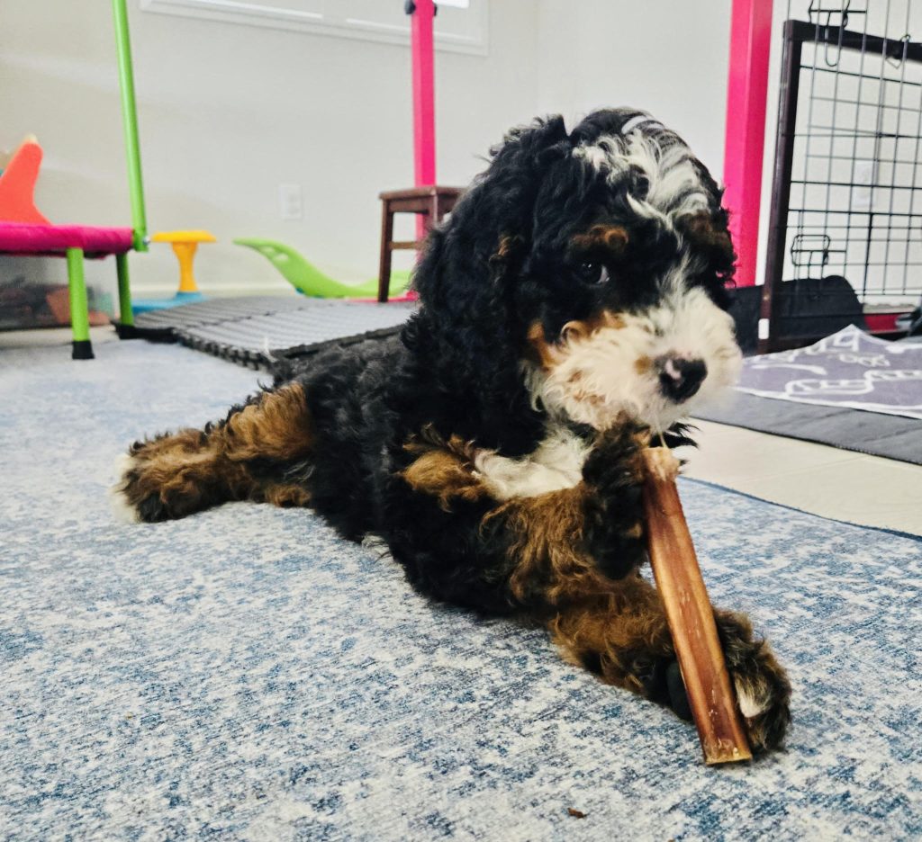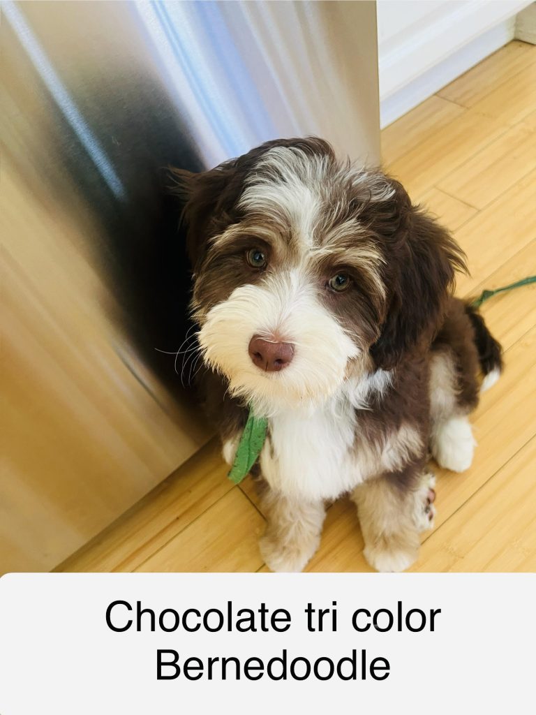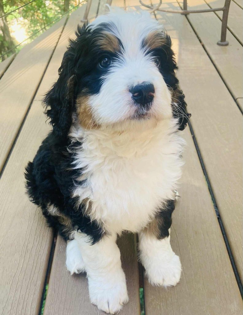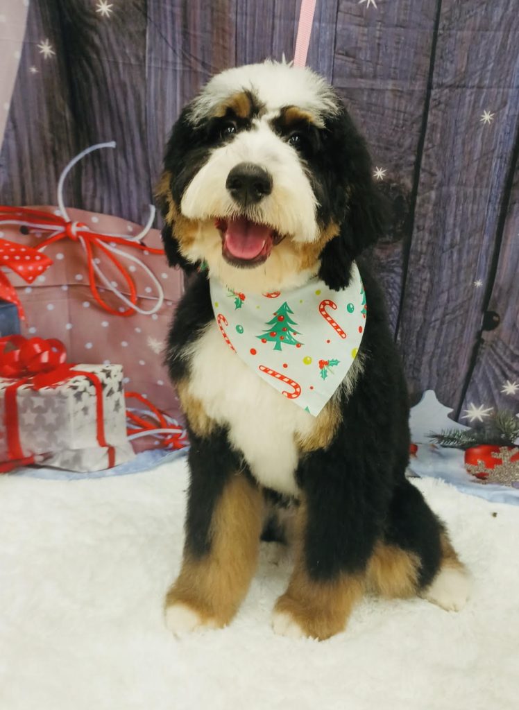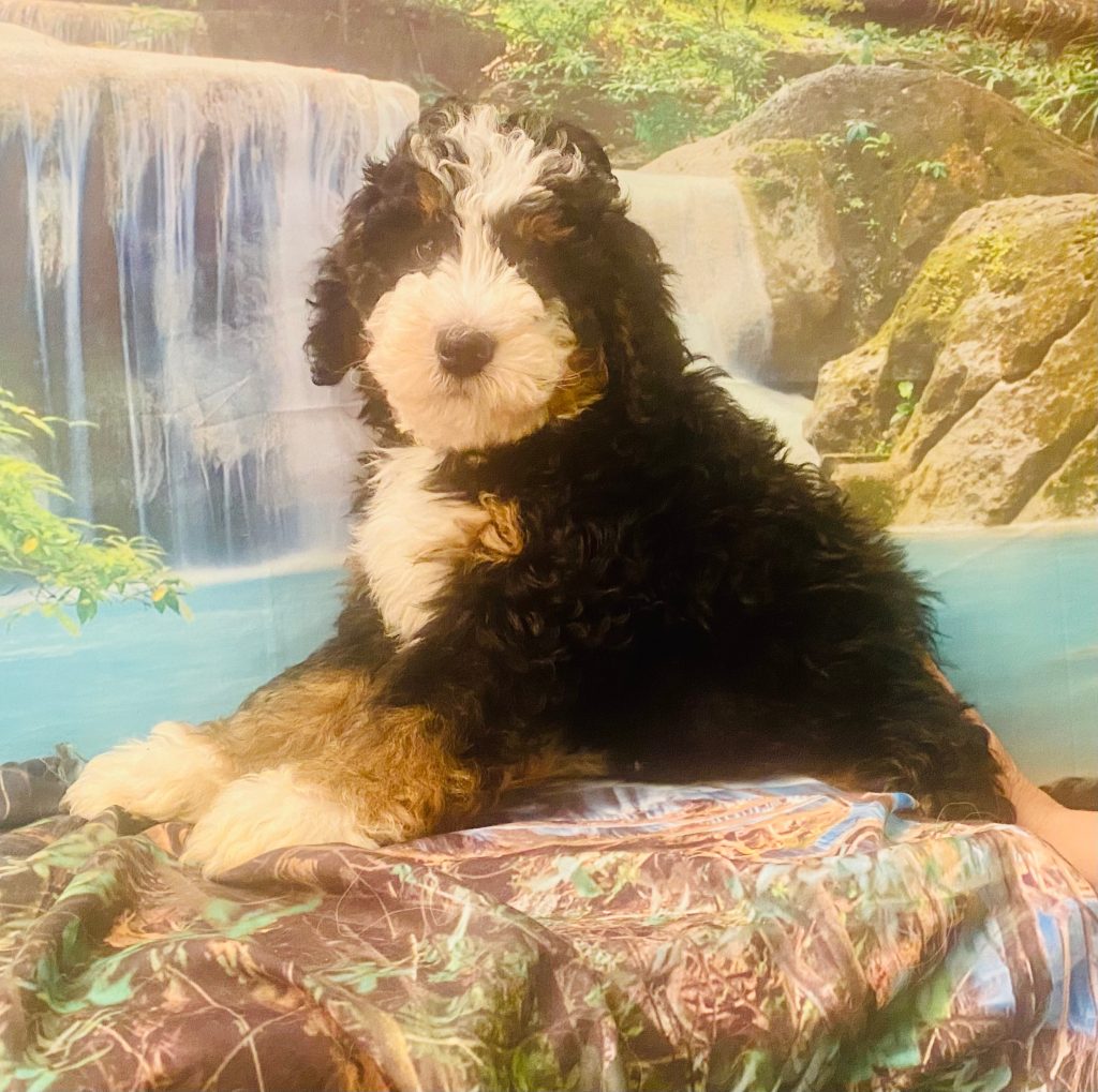 We may be Biased but we feel he is the best looking Bernedoodle we have ever seen. This may also be WHY he is so popular with the ladies! He is the father to all the pups we offer. He is a Velcro dog, as in always wants to be by your side or in your lap. Jackie is Genetically health tested and weighs 30lbs