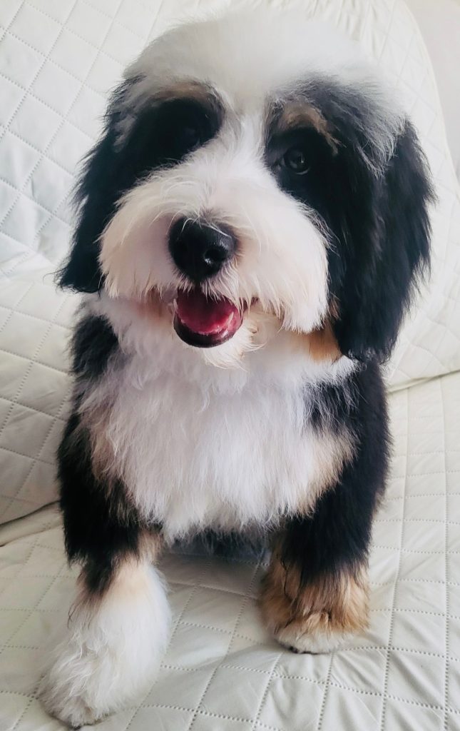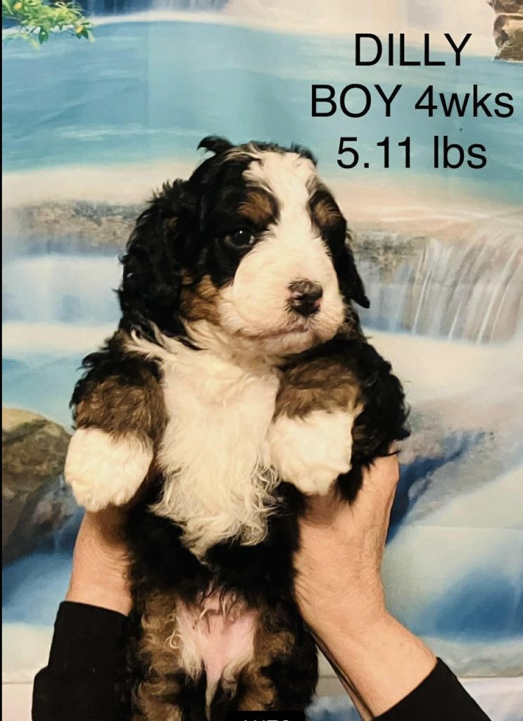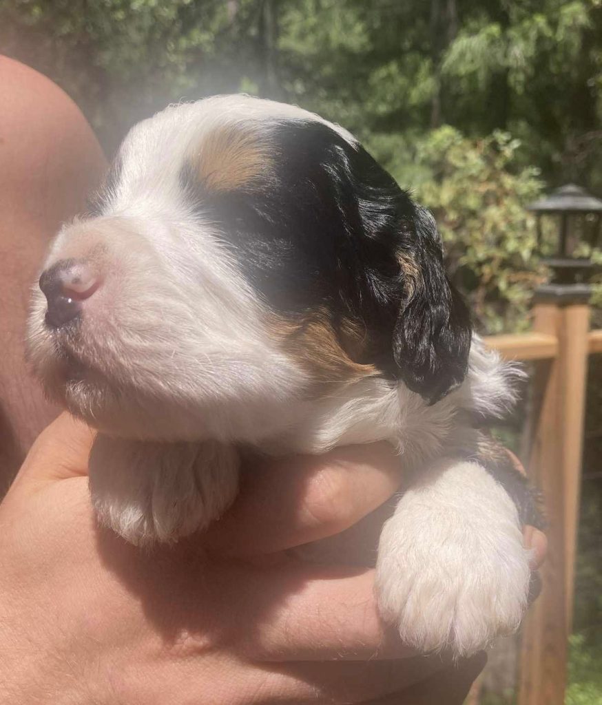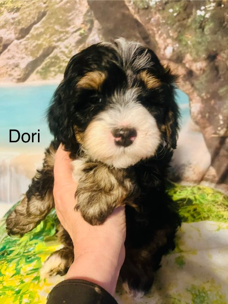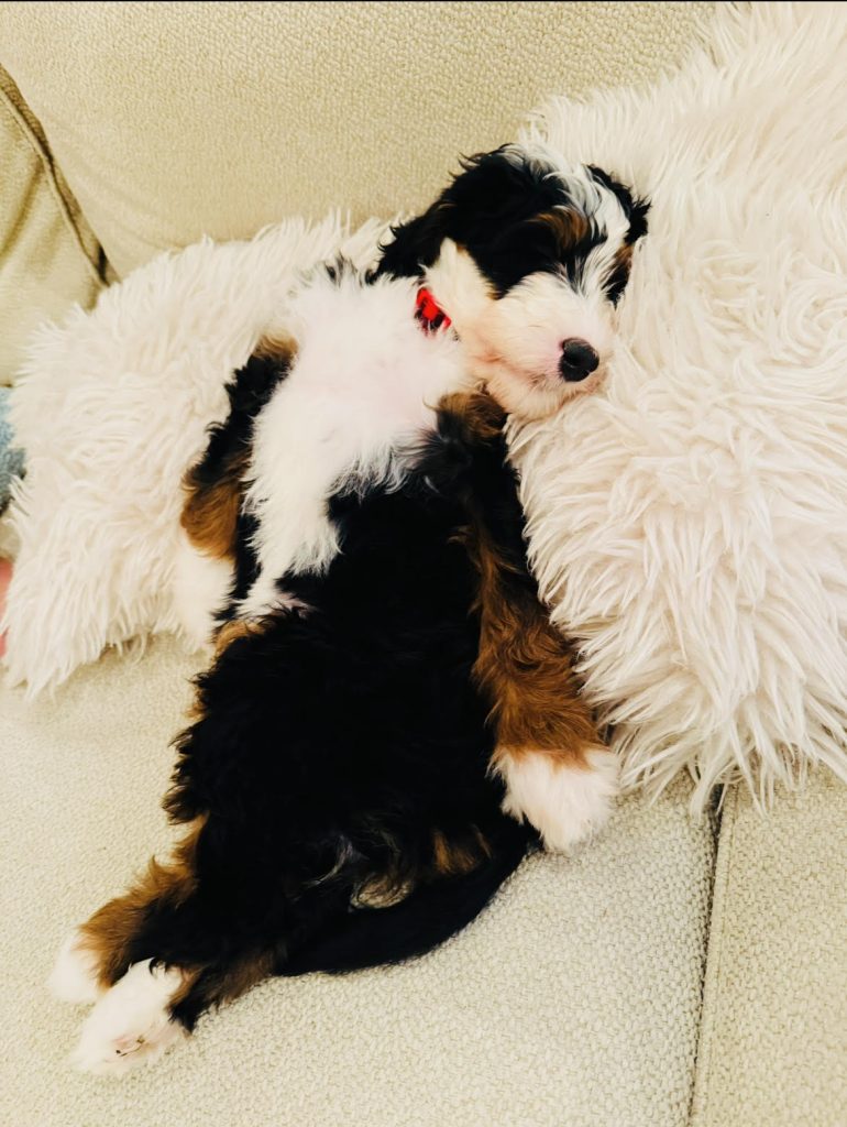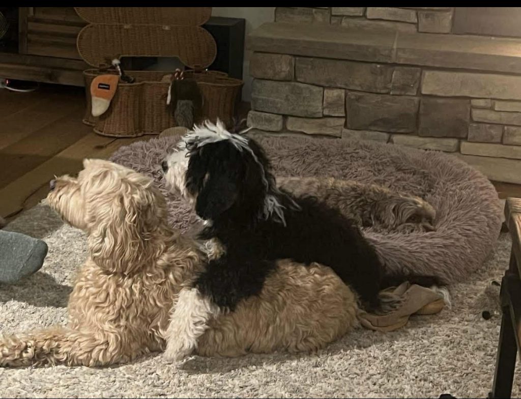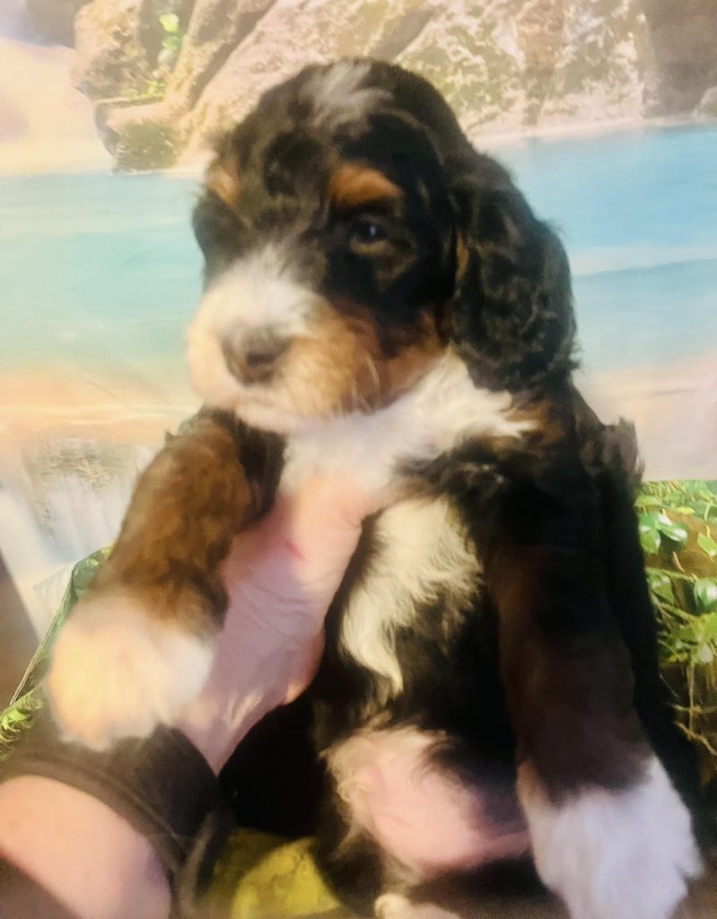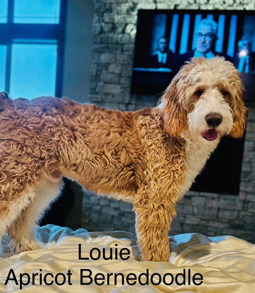 We may be Biased but we feel he is the best looking Bernedoodle we have ever seen. This may also be WHY he is so popular with the ladies! He is the father to all the pups we offer. He is a Velcro dog, as in always wants to be by your side or in your lap. Jackie is Genetically health tested and weighs 30lbs