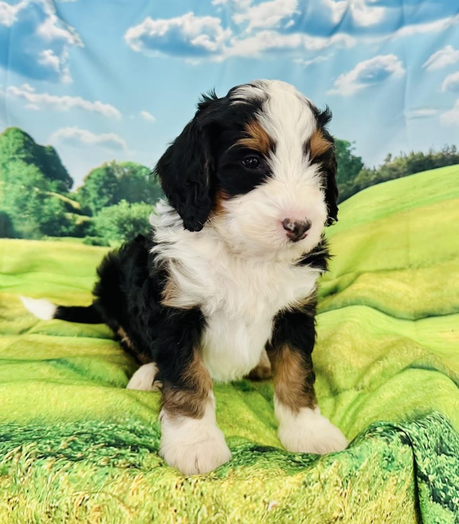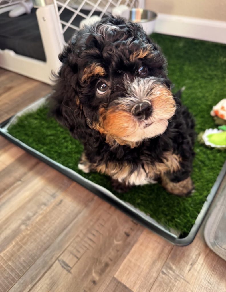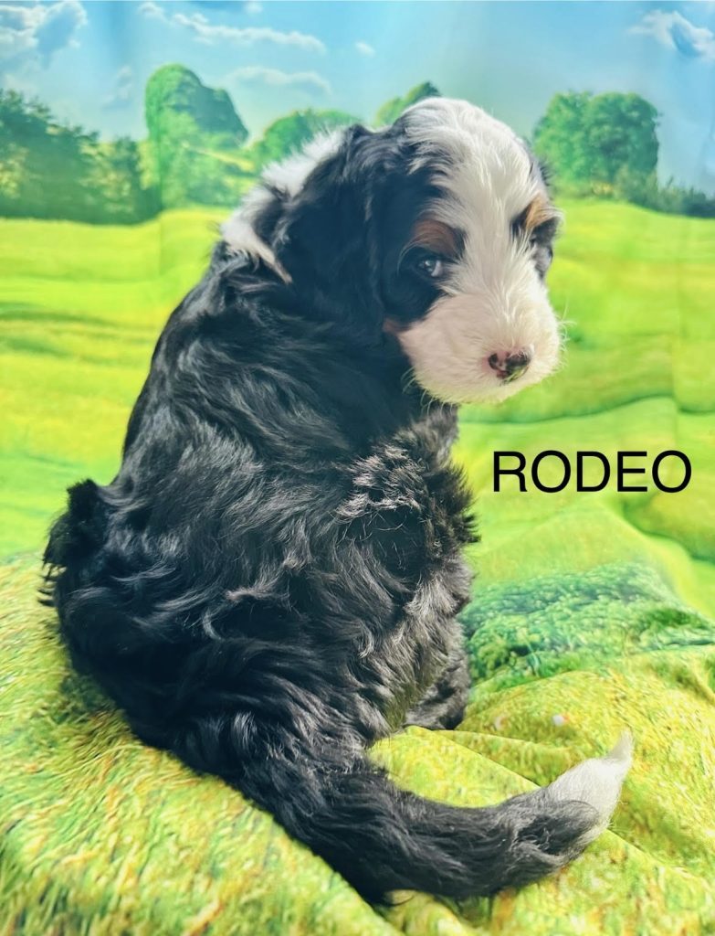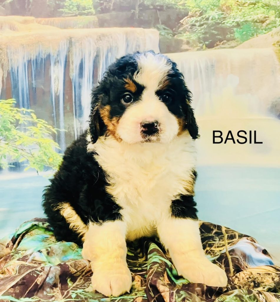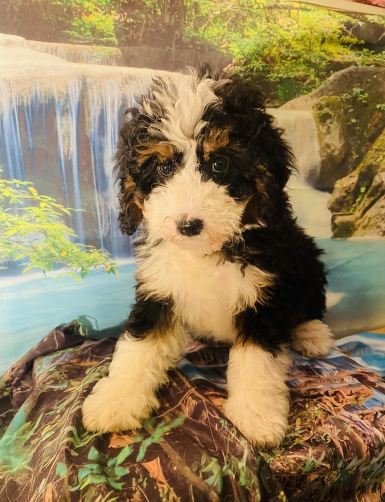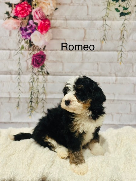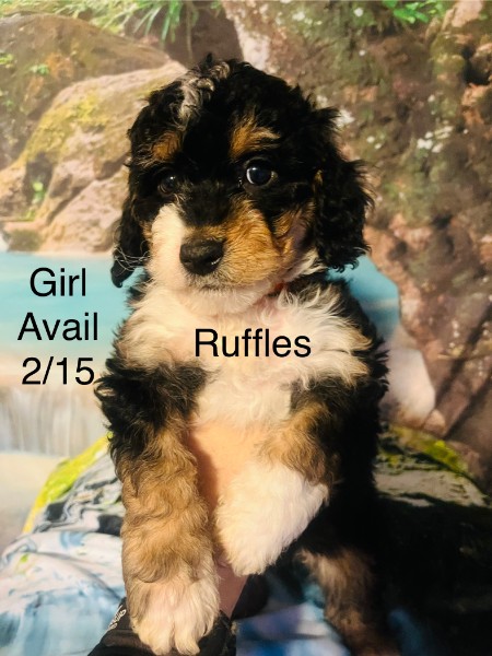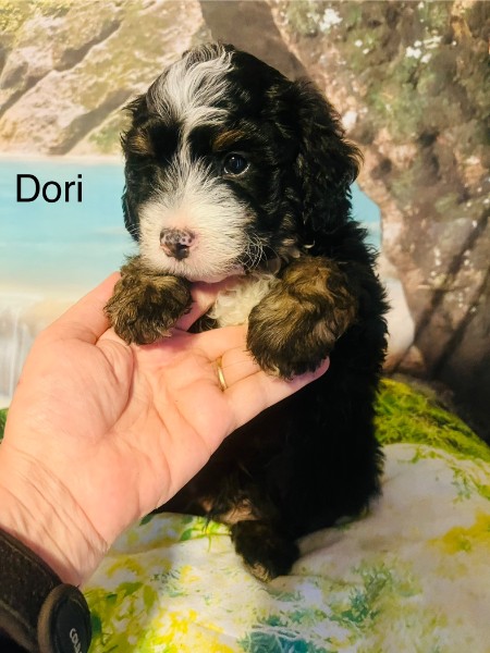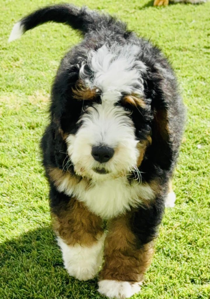 We may be Biased but we feel he is the best looking Bernedoodle we have ever seen. This may also be WHY he is so popular with the ladies! He is the father to all the pups we offer. He is a Velcro dog, as in always wants to be by your side or in your lap. Jackie is Genetically health tested and weighs 30lbs